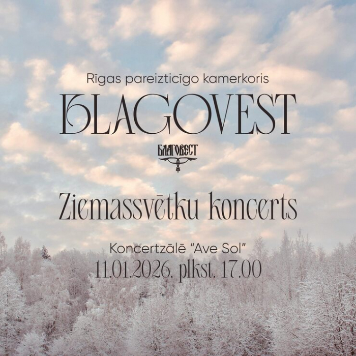 11. janvāra pievakarē Koncertzālē “Ave Sol” Rīgas pareizticīgo kamerkoris “Blagovest” aicina sākt Jauno gadu ar pareizticīgo Ziemassvētku koncertu - garīgu muzikālu notikumu, kas ļaus iejusties Kristus Piedzimšanas svētku gaišajā noskaņā.