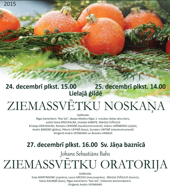 24. un 25. decembrī Lielajā ģildē; 27. decembrī Sv. Jāņa baznīcā